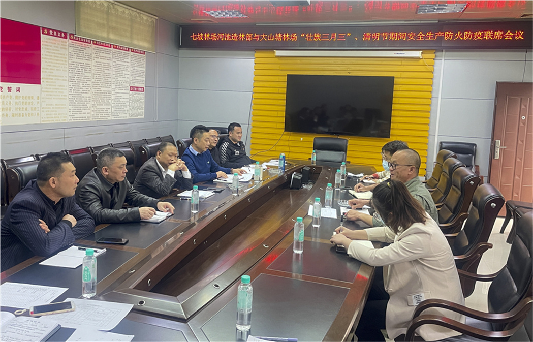 2022年3月22日,七坡林场河池造林部与大山塘林场召开“壮族三月三”清明节期间安全生产、森林防火和疫情防控联席会议,提出筑牢林区安全防护墙三个措施。
