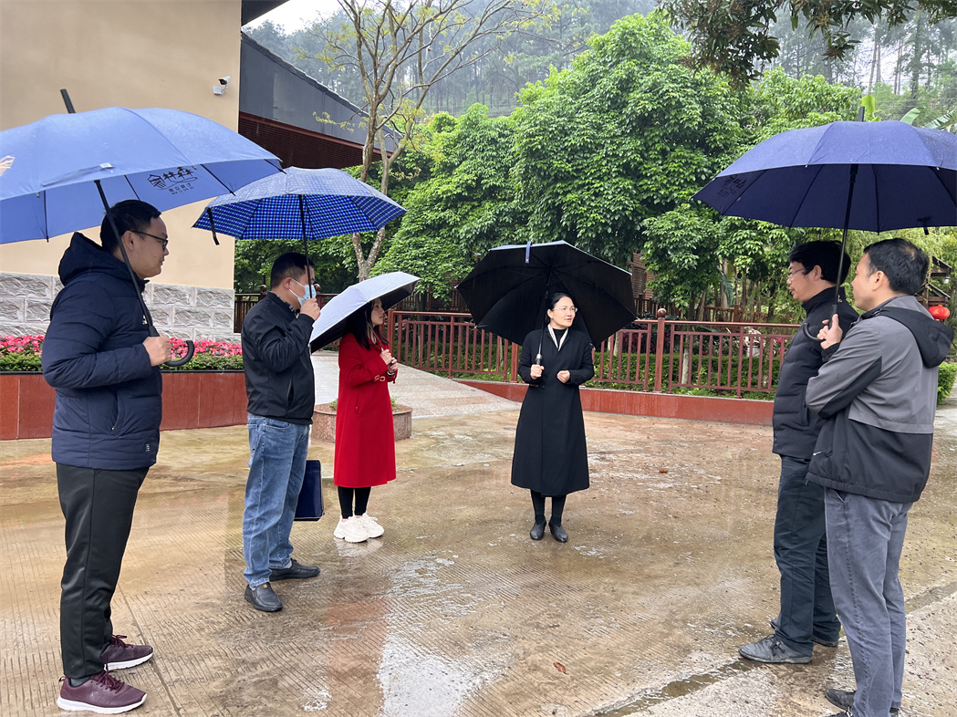 七坡林场党委副书记、纪委书记何英姿(右三)带队到七彩公司开展安全检查