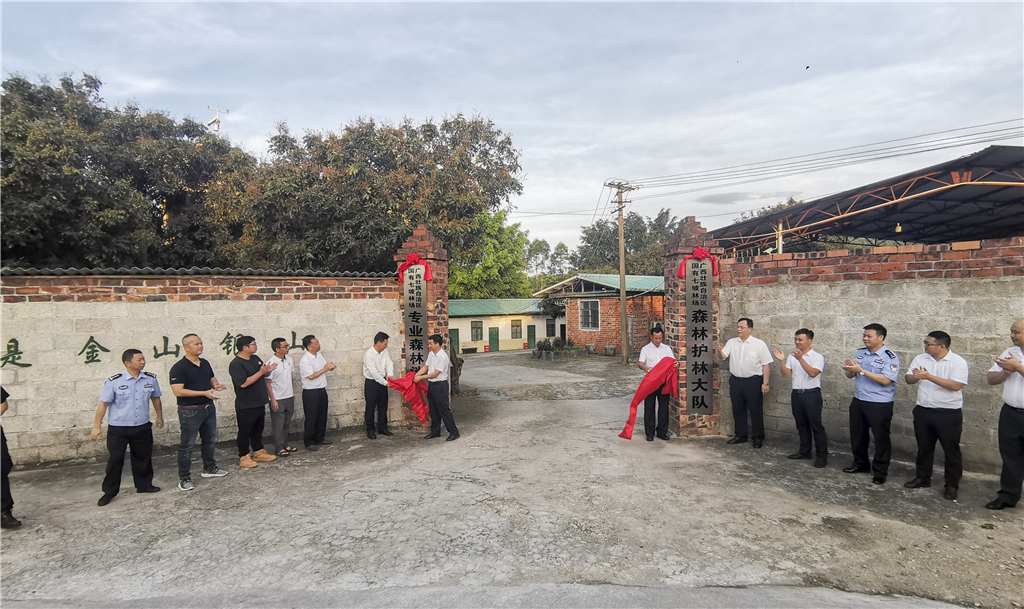 场办公室、林政科、安防办、七坡分场、上思一分场、七坡派出所主要负责人以及森林护林大队全体人员参加揭牌仪式。