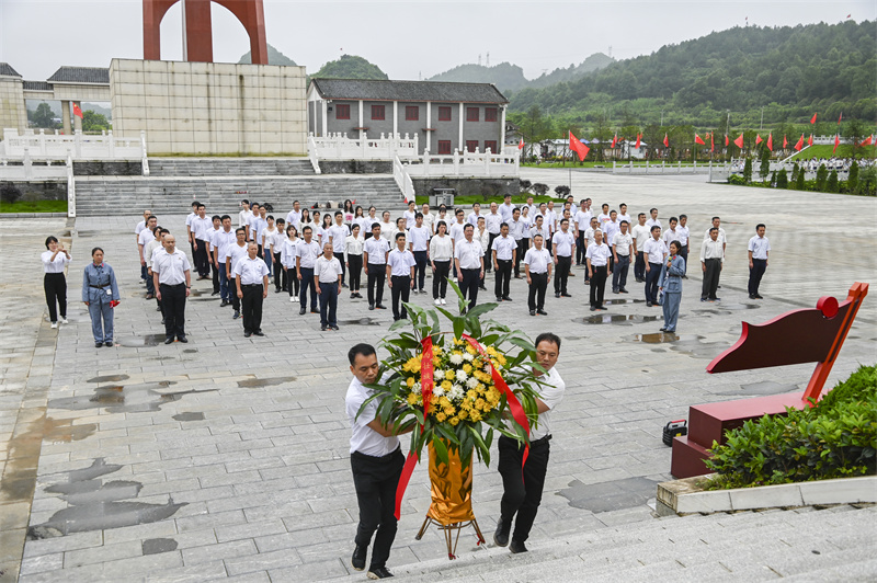 作为湘江战役的主战场之一新圩阻击战在灌阳打响,战斗期间,这里曾有百余名伤员落入敌人手中,并被残忍地活活投入到名为“酒海井”的地下河,全部壮烈牺牲。灌阳酒海井红军纪念园,厚重的石碑上,无数个平凡的名字,用他们的血与肉,共同书写了伟大的历史。我们在此缅怀先烈、向红军烈士敬献花篮、重温入党誓词,为5-6月份入党的同志送上政治生日贺卡,并开展“感党恩 跟党走”党史学习教育“党员心声大家谈”。我们铭记这一段历史、铭记这些年轻的红军英灵、铭记自己是一名共产党员。