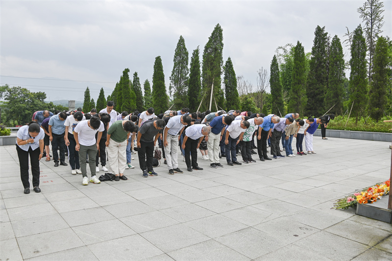 在光华铺阻击战遗址大家向英雄鞠躬默哀,表达对革命英烈的崇高敬意和深切怀念。在连续两天三夜的光华铺阻击战中,红三军团以1000多人牺牲的惨重代价,阻击了桂军的攻击,这一场规模虽小的战役,但是却确保了中央纵队和后续部队从界首安全渡江。