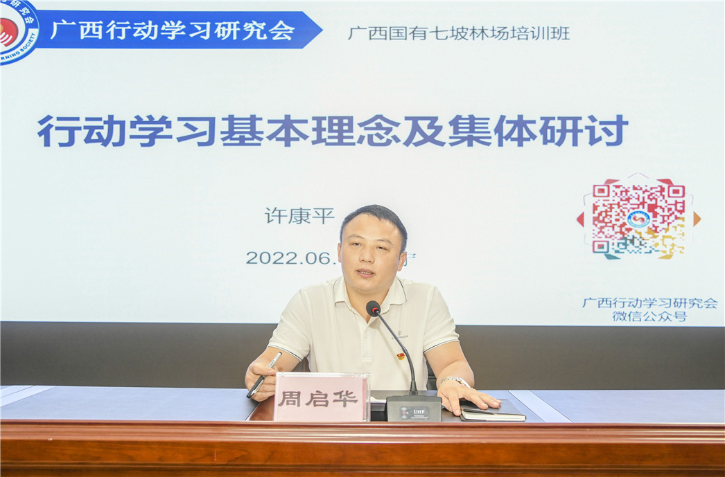 2022年6月10日,七坡林场开展“党建+行动学习”培训,七坡林场党委委员、副场长周启华出席培训并发表讲话。此次培训邀请了广西行动学习研究会副会长、骨干促进师和内训师,南宁职业技术学院许康平副教授来场指导授课。