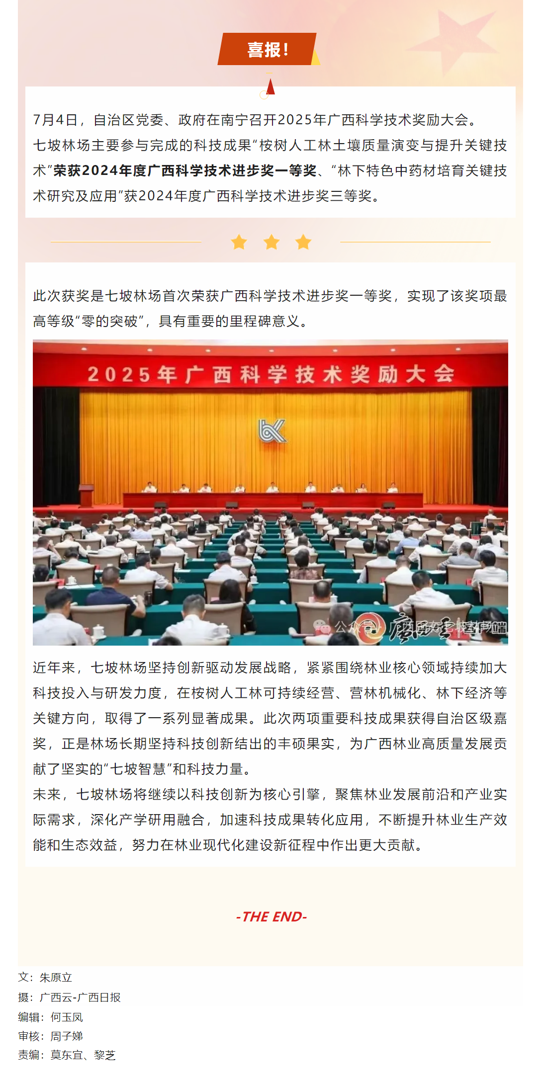 七坡林场首获广西科学技术进步奖一等奖