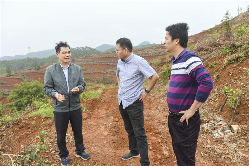 2021年10月18日,国家林业和草原局经济研究中心处长毛炎新率调研组到七坡林场调研伐区生产和大径材培育。七坡林场副场长莫继有、广西林业设计院总工程师韦立权陪同调研。