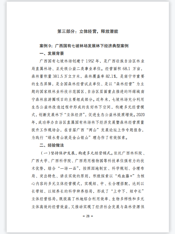 近日,从国家林业和草原局获悉,七坡林场林下经济发展被列为典型案例,印发至各地林业部门学习借鉴。本次被列为典型案例共28个,其中广西3个。