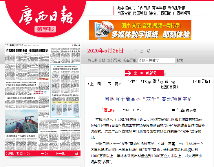 广西日报:河池首个商品林“双千”基地项目签约