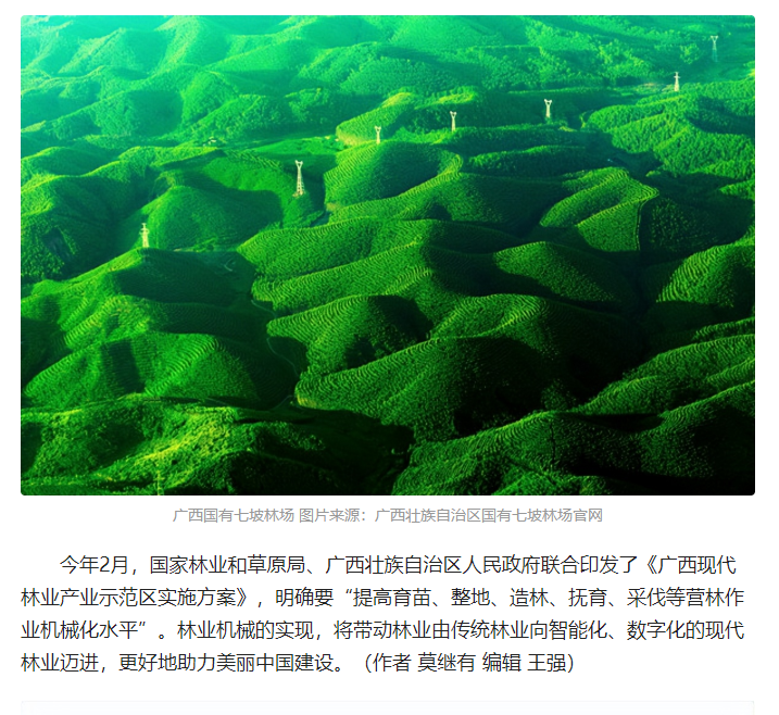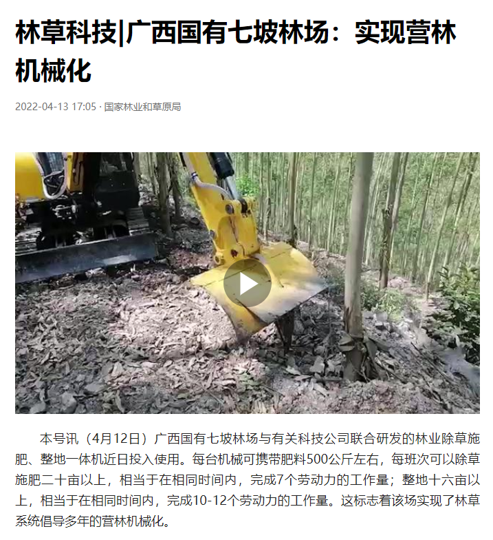 【媒体关注】国家林业和草原局丨广西国有七坡林场:实现营林机械化
