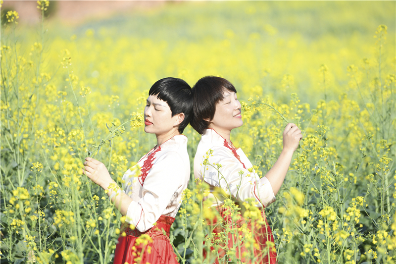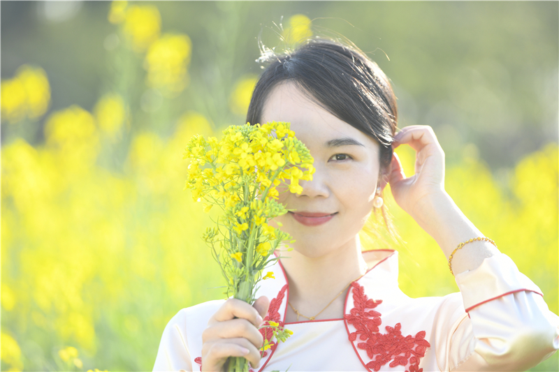 在油菜花海内,礼仪队成员学习语言礼仪、仪容礼仪、沟通礼仪等职场礼仪知识;摄影组成员学习镜头光圈、快门速度、构图技巧等摄影基础知识。大家纷纷举起相机,定格美好瞬间,用心创作每一张作品。