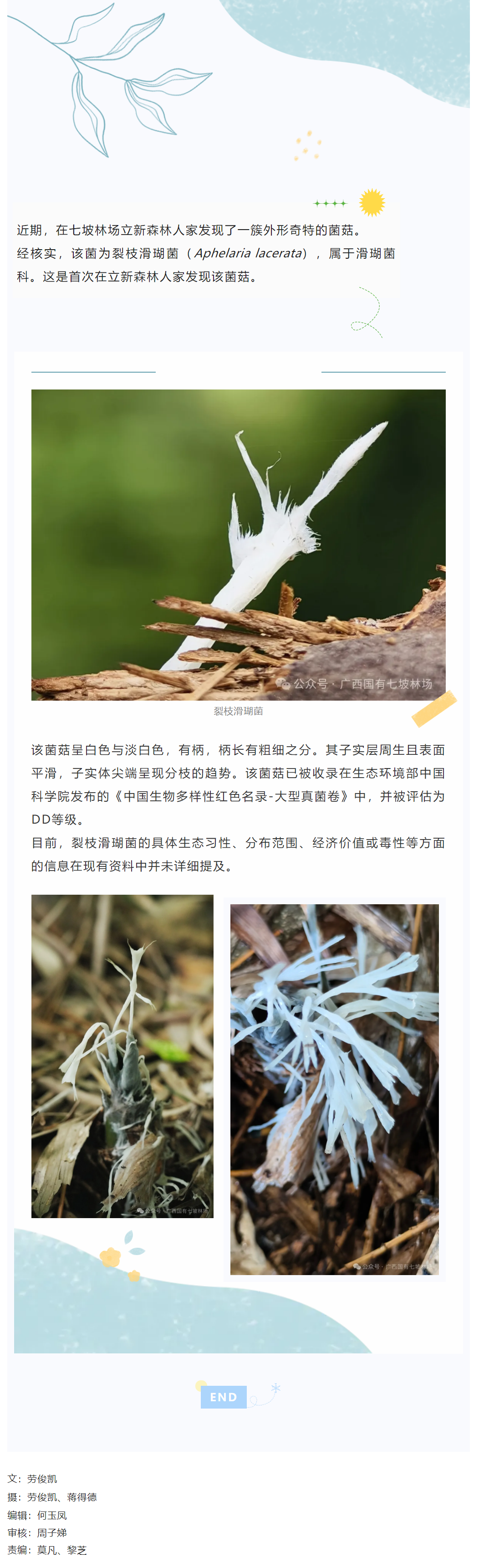 七坡林场立新森林人家首次发现裂枝滑瑚菌