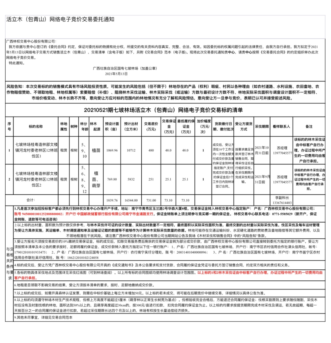 20210521期七坡林场活立木电子交易清单(桂粤造林部 )