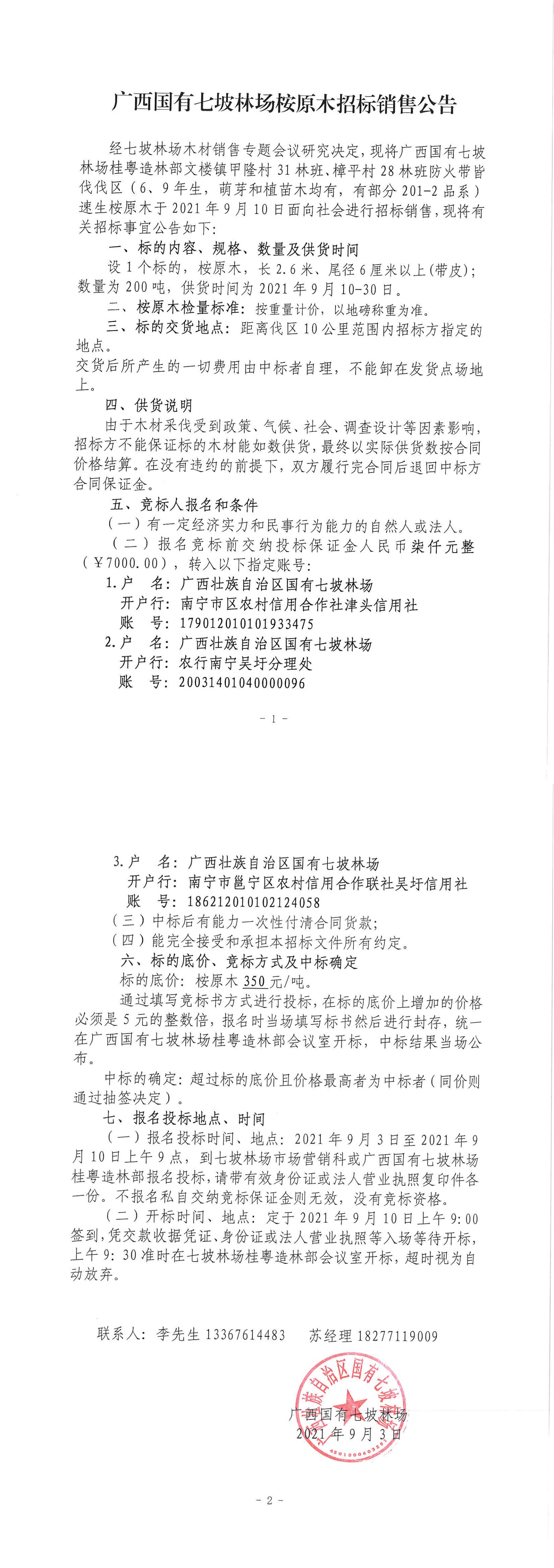 广西国有七坡林场桉原木招标销售公告(桂粤造林部)
