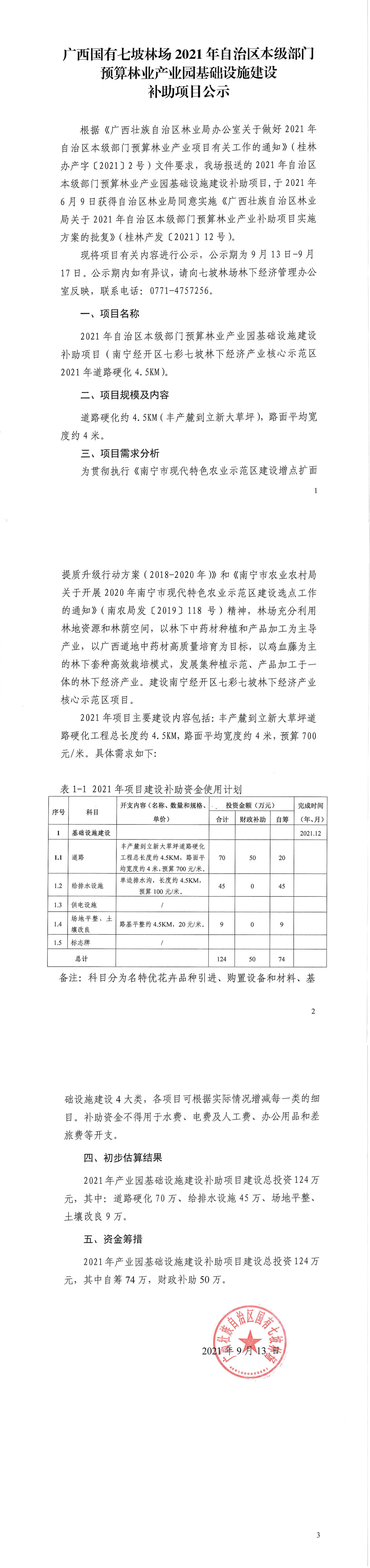 广西国有七坡林场2021年自治区本级部门预算林业产业园基础设施建设补助项目公示