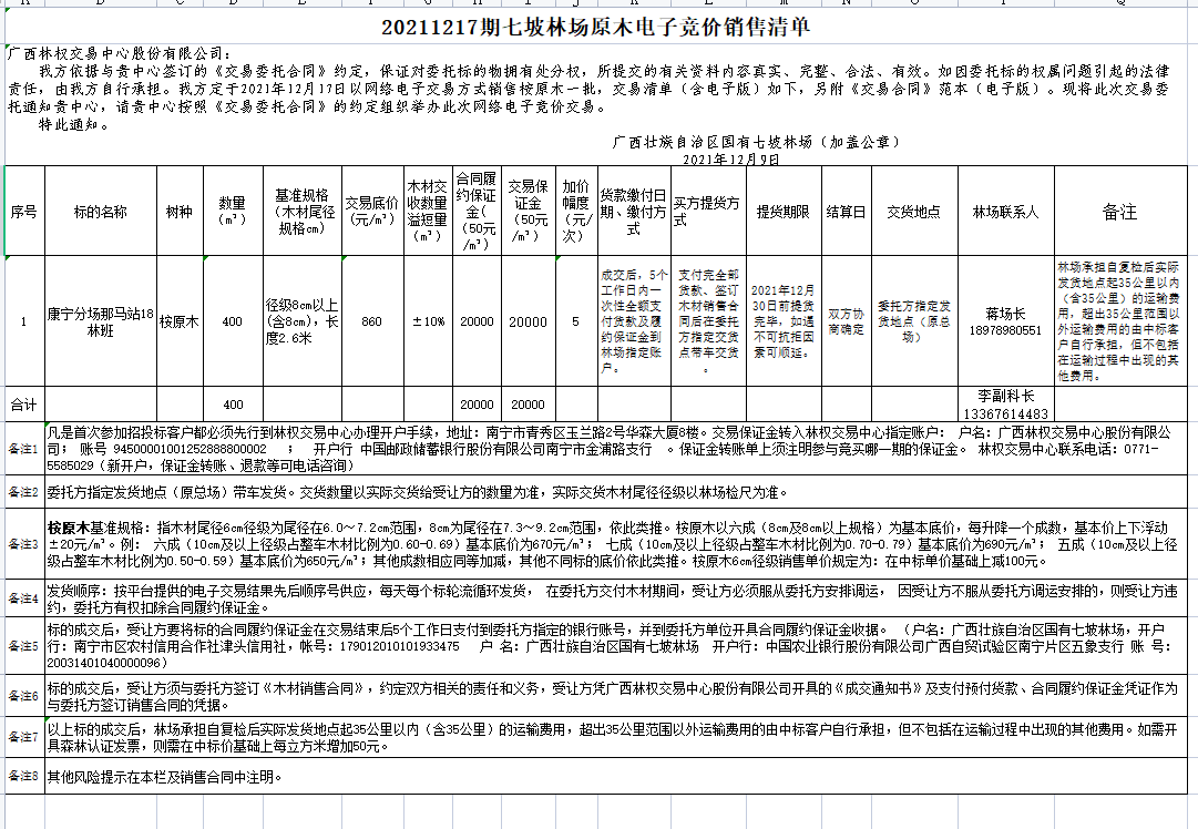20211217期七坡林场原木电子竞价销售清单