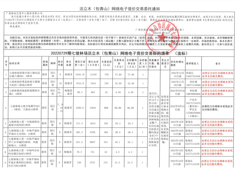 20220729期七坡林场活立木电子交易清单流标标的