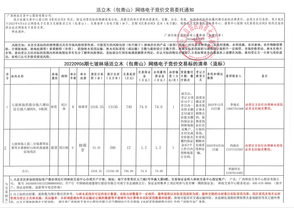 20220906期七坡林场活立木电子交易清单(流标)
