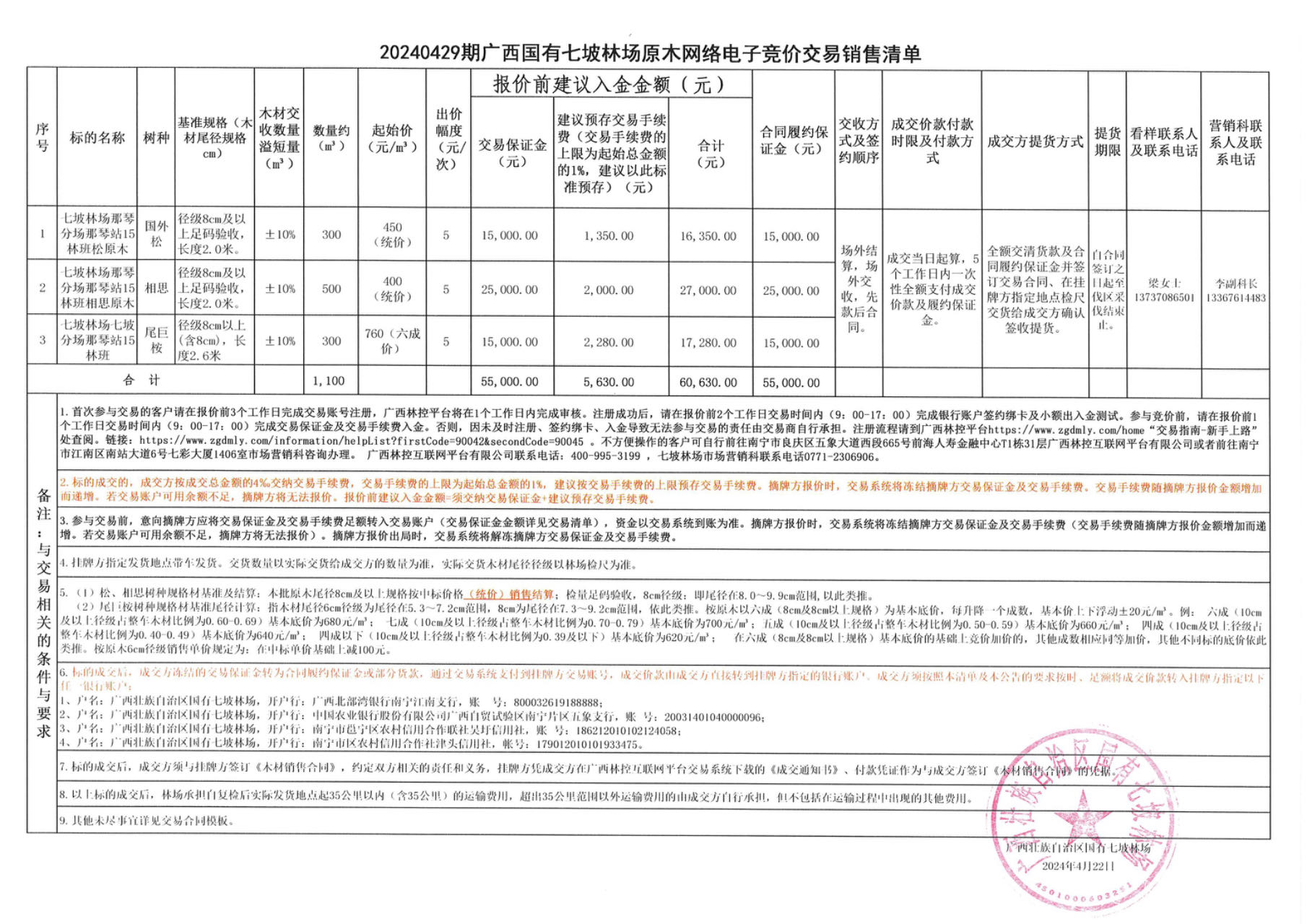 20240429期广西国有七坡林场原木网络电子竞价交易销售清单