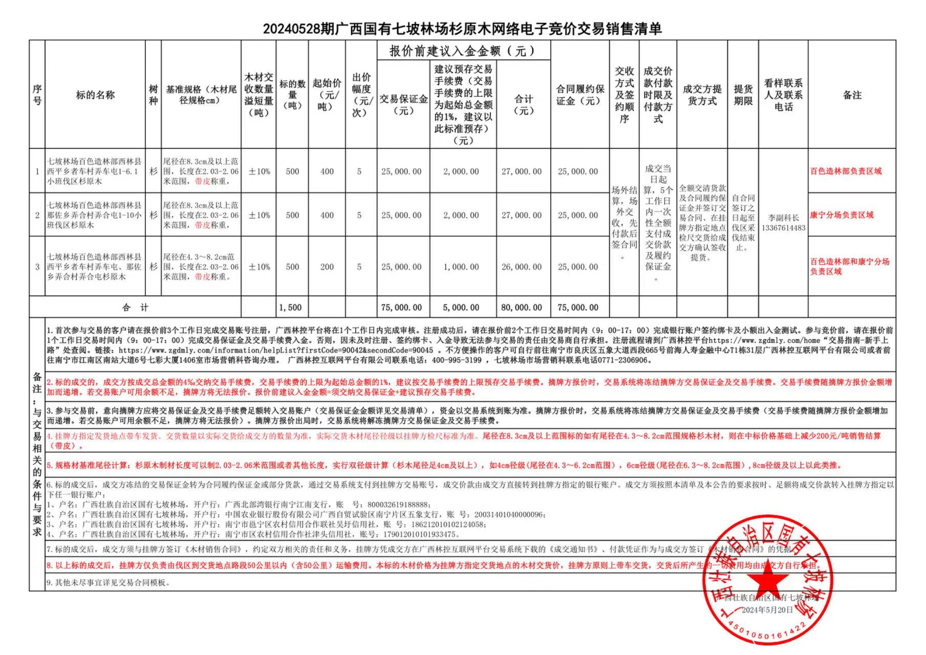 20240528期广西国有七坡林场杉原木网络电子竞价交易销售清单