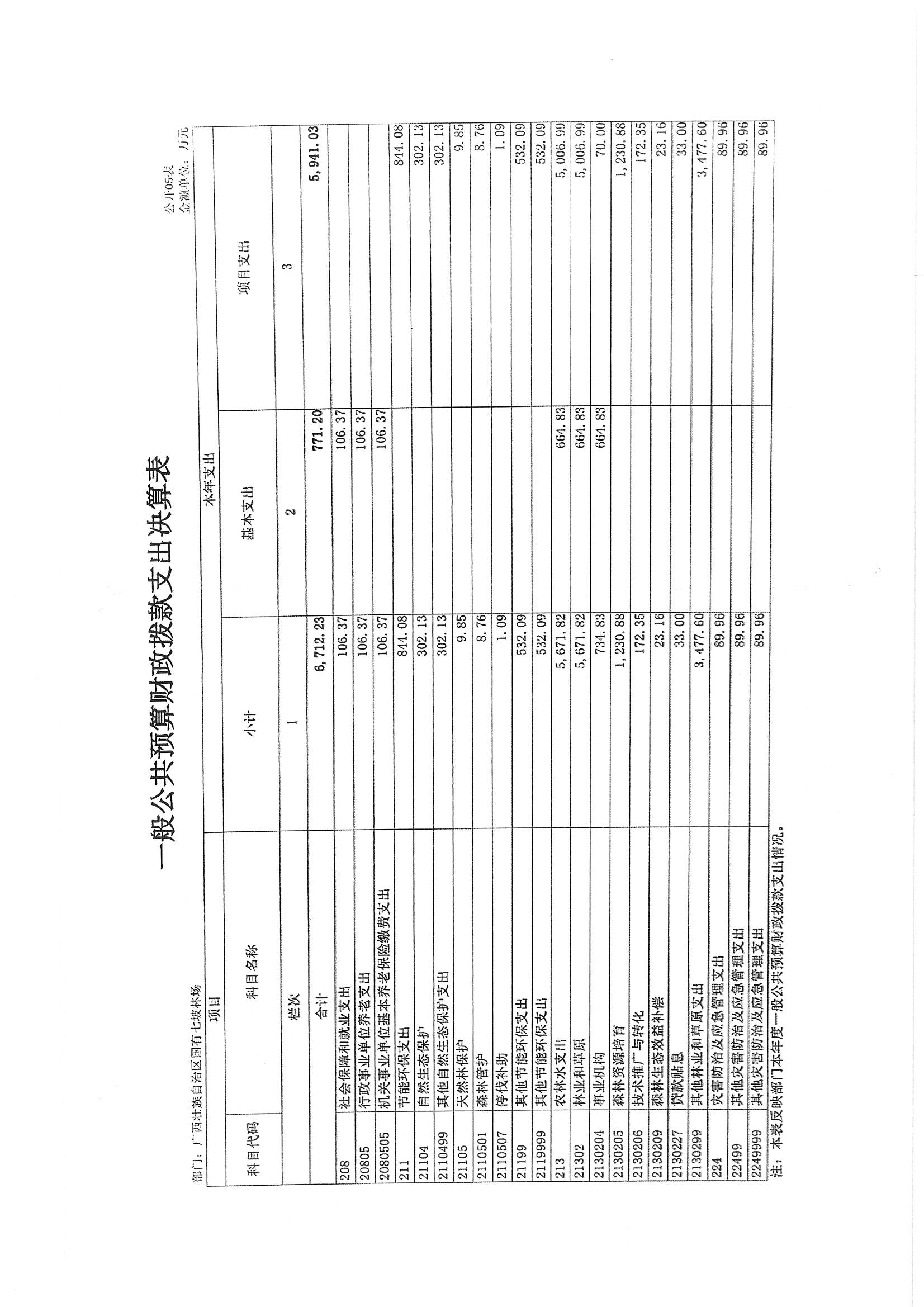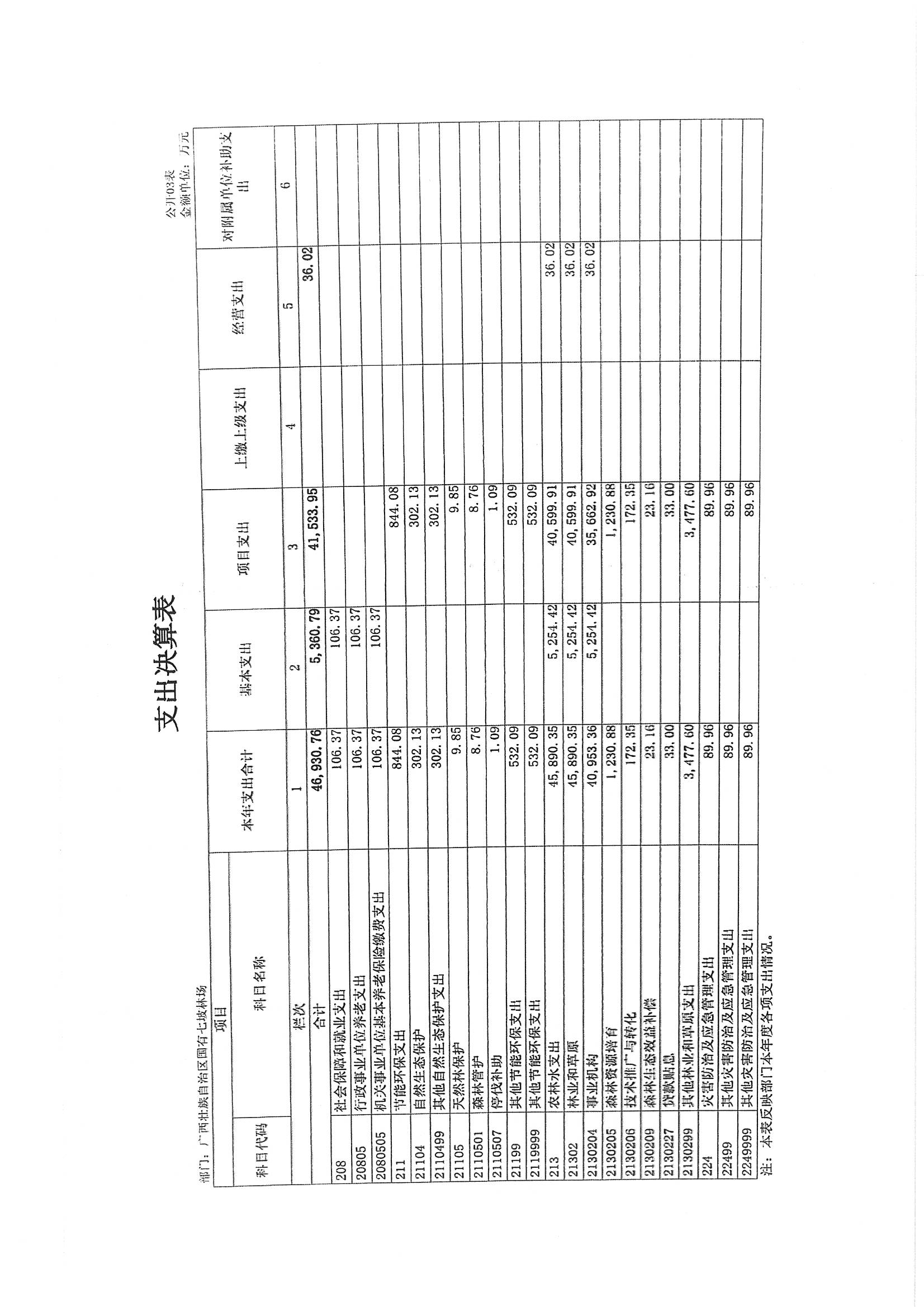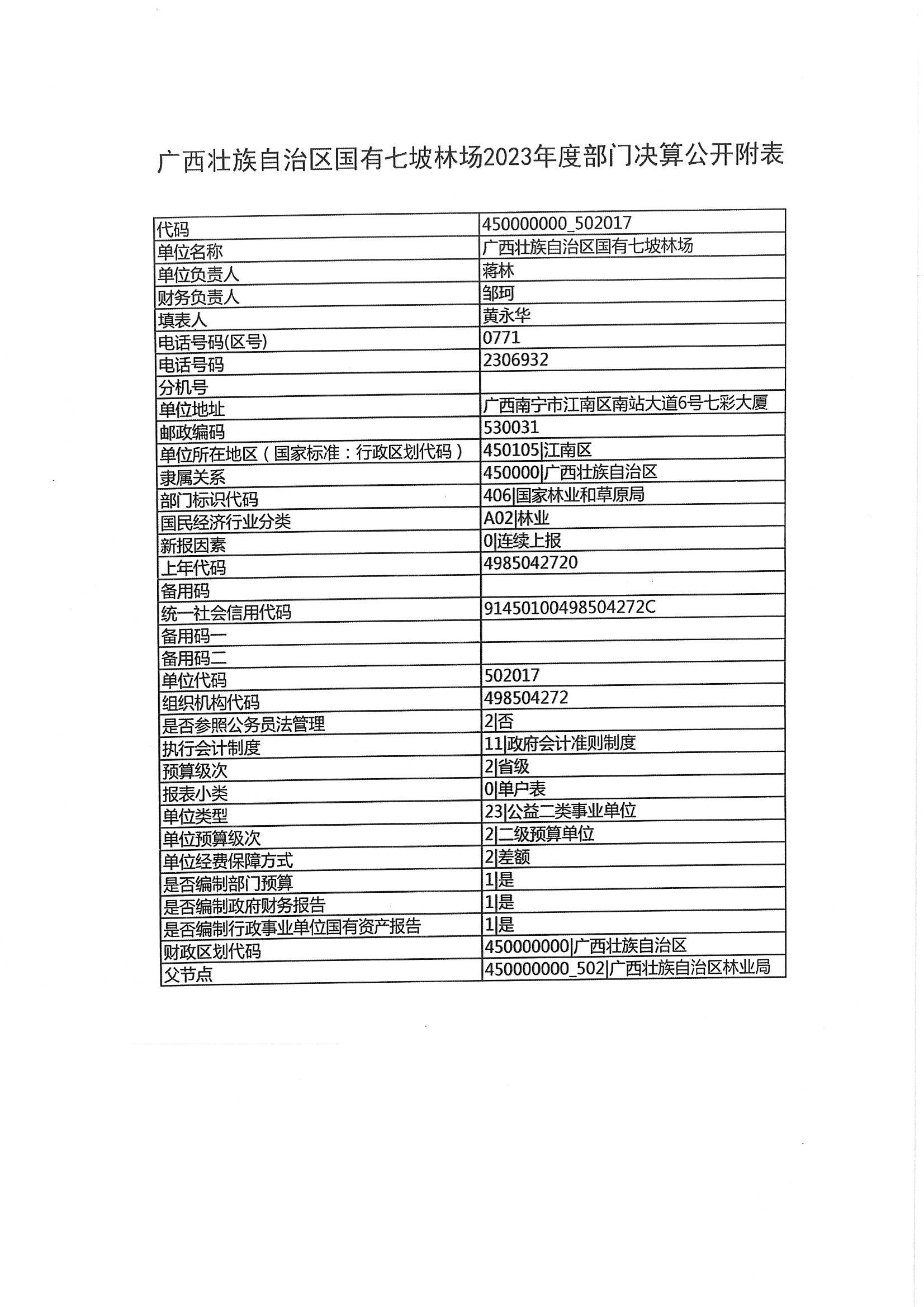 广西壮族自治区国有七坡林场2023年度部门决算