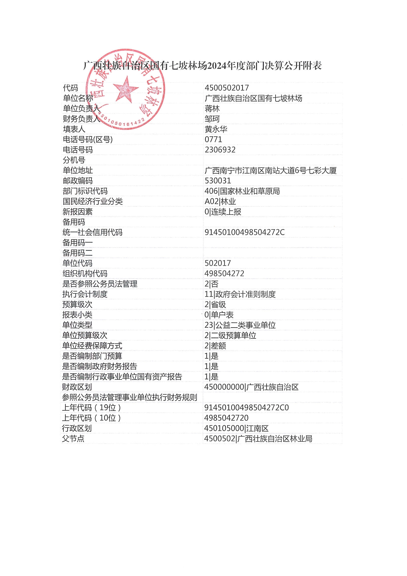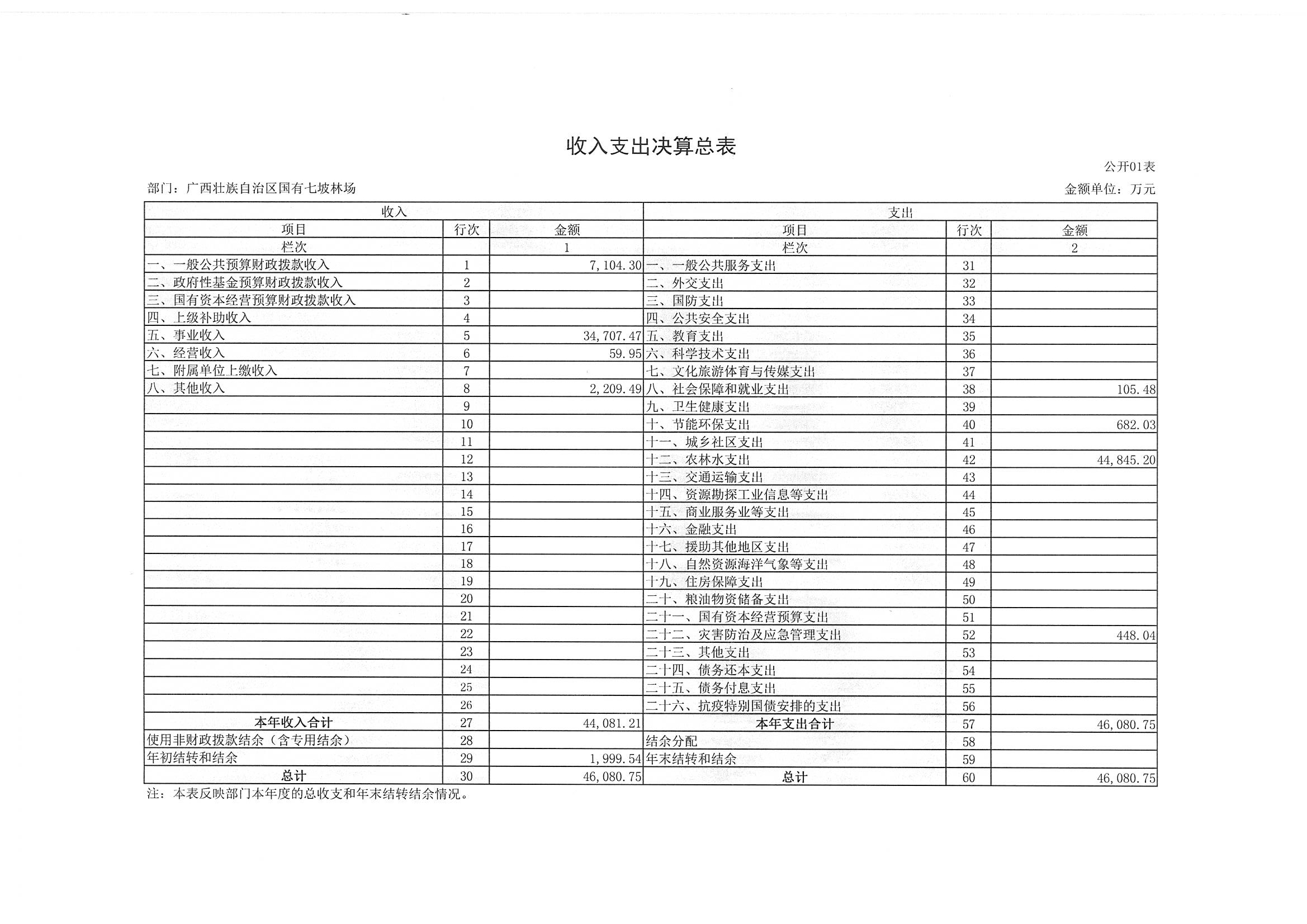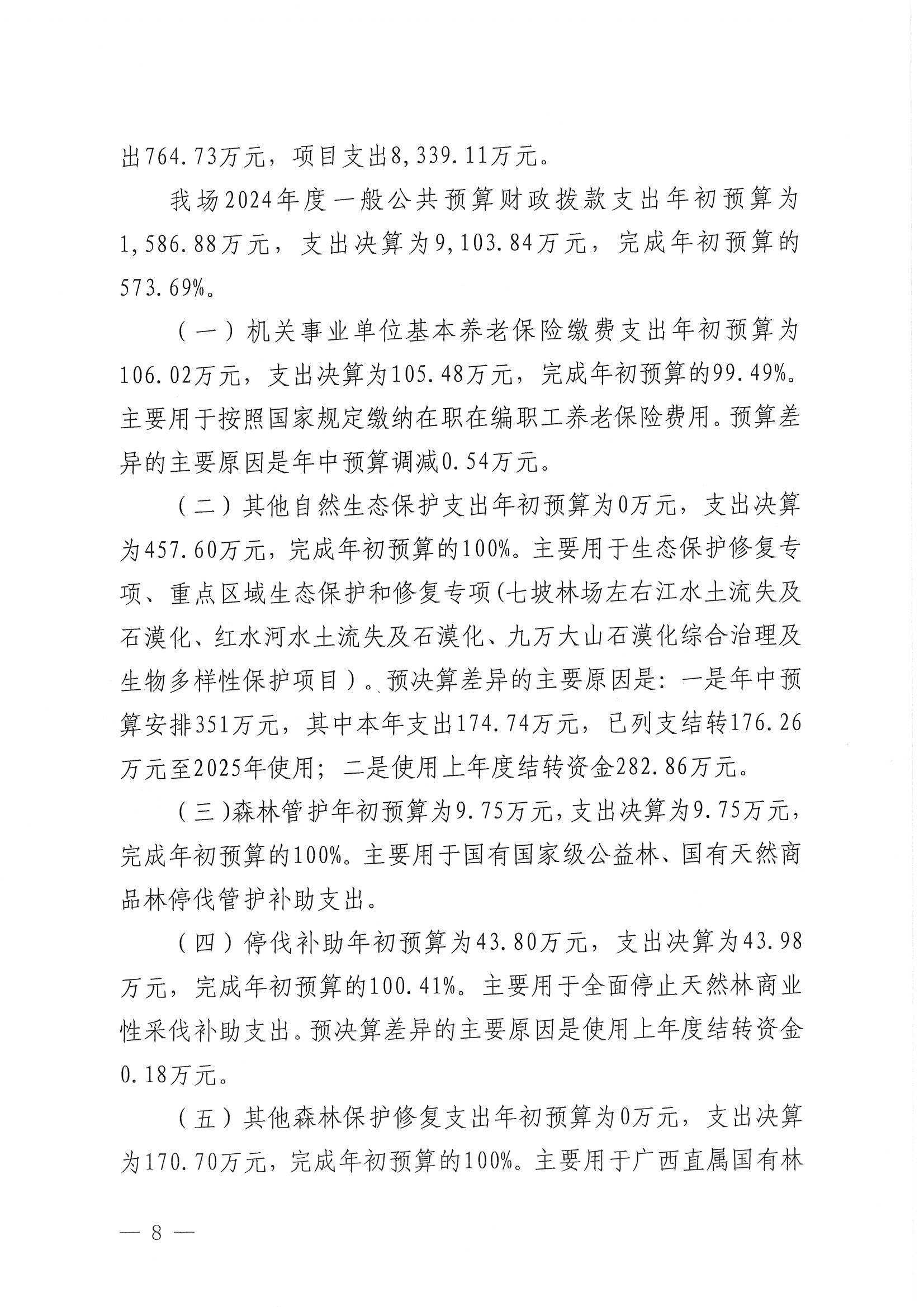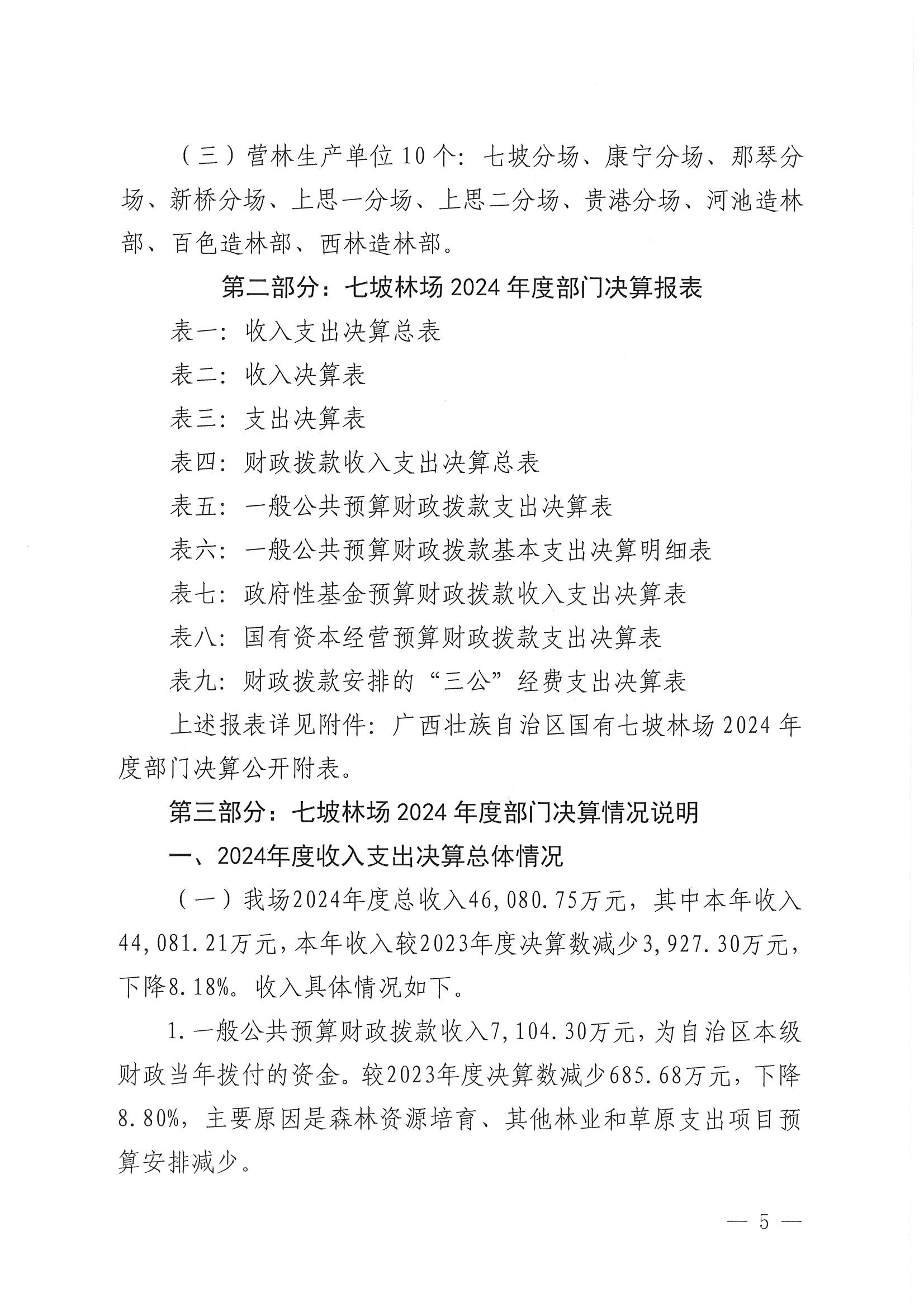 广西壮族自治区国有七坡林场2024年度部门决算