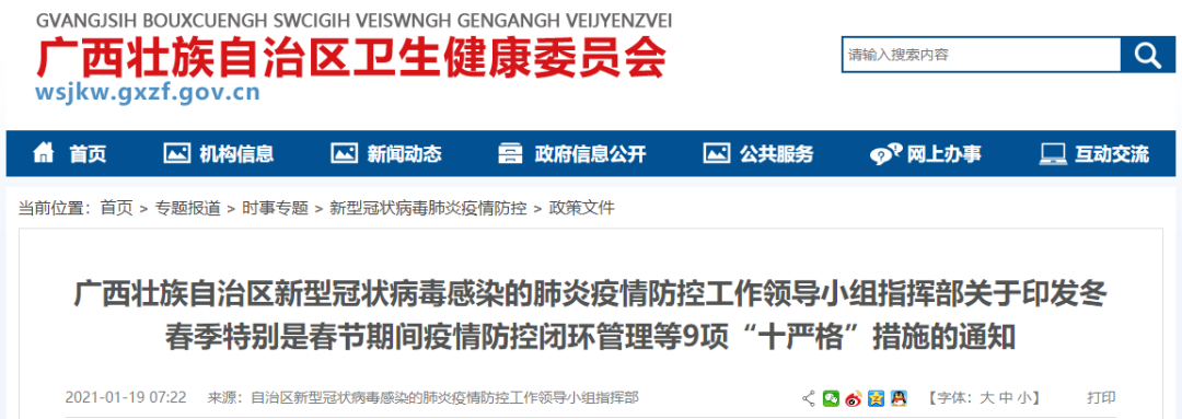 注意!广西冬春季和春节期间疫情防控闭环管理等9项“十严格”措施来了