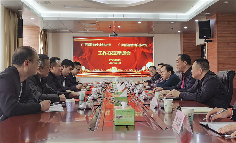 2021年3月1日,七坡林场副场长周启华带队到博白林场胶合板厂调研,并与博白林场场长罗敦、党委书记林武、副场长刘源澄等领导进行交流学习。