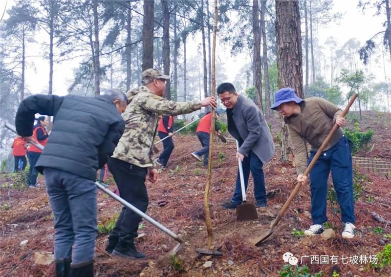 2021年3月4日,中国农业发展银行广西区分行组织30多名党员到七坡林场立新森林人家开展党建植树活动。七坡林场常务副场长朱兵参加植树活动。