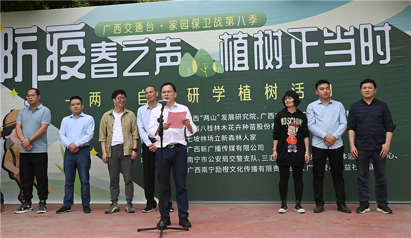 2021年3月20日,广西交通台·八桂种苗 "家园保卫战”第八季 “防疫春之声 植树正当时” 两山自然研学植树活动在七坡林场立新森林人家成功开展。广西林业科学研究院党委书记尹国平、广西广播电视台交通广播总监莫新华、广西国有七坡林场常务副场长朱兵、广西林业科学研究院副院长李开祥出席活动并致辞。广西“两山”发展研究院、广西交通台、七坡林场等领导出席活动。