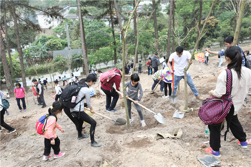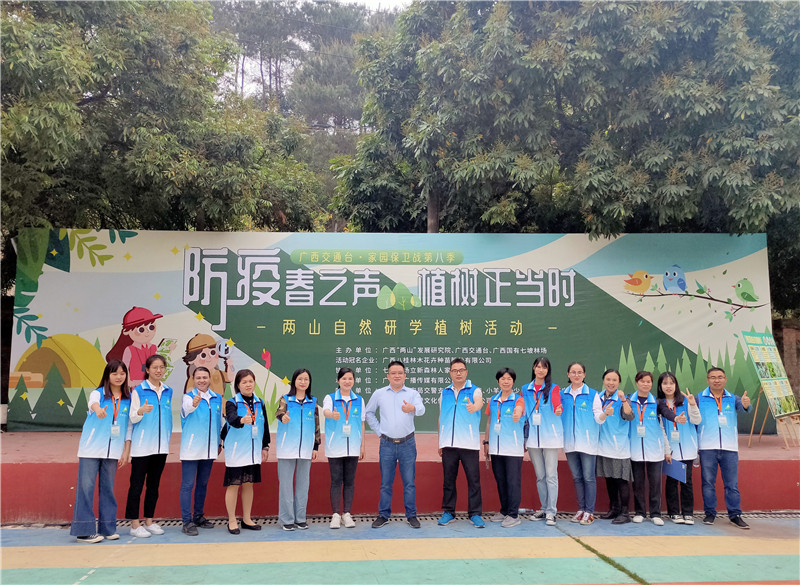 该次活动由广西“两山”发展研究院、广西交通台、广西国有七坡林场共同举办,由七坡林场立新森林人家承办,共有600多人参加,种植树种有宫粉紫荆、山茶花、紫玉兰等。
