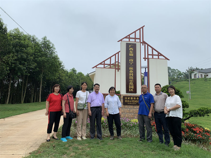 钦州市林业科学研究所一行参观了广西东盟(南宁)林业科技示范园区中珍贵树种高效培育展示园和林下经济核心示范区,对林场纯林改造、混交林等森林经营模式以及林下种植中草药和茯苓给予高度认可。他们表示,通过本次交流学习得到较大启发,今后要谋划好钦州市周边40多万桉树纯林改造,发挥出最大的生态、经济、社会效益,让市民享受最好地林业福利。