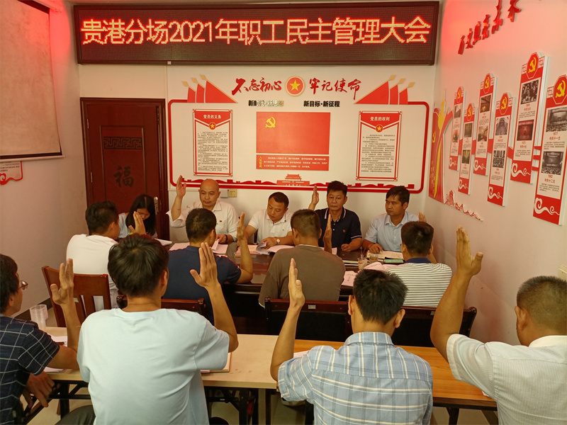 2021年6月9日,贵港分场召开职工民主管理大会,七坡林场副场长周启华出席指导会议。