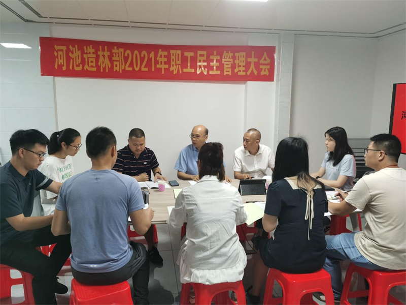2021年6月2日上午,河池造林部召开了2021年职工民主管理大会,场工会主席李怡毅出席指导会议。