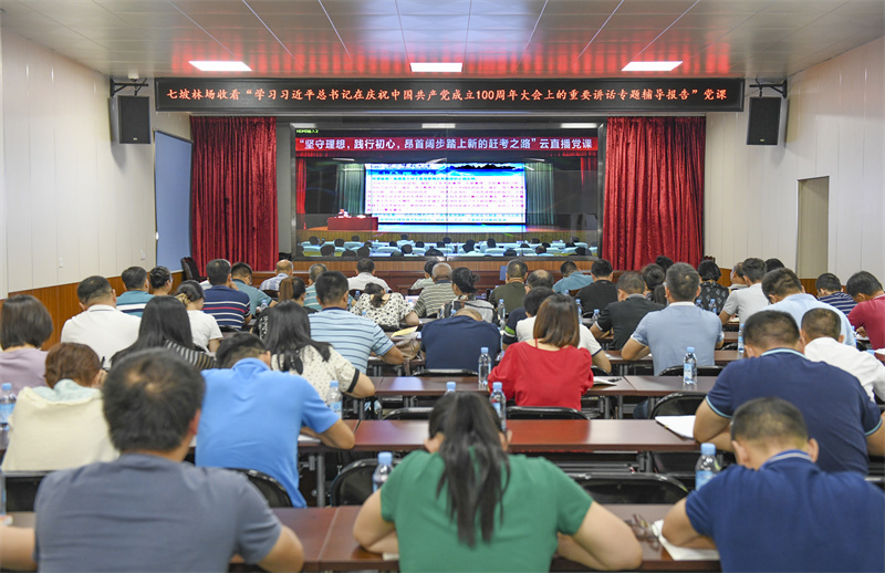 七坡林场组织党员观看“十场名家云直播”之“学习习近平总书记在庆祝中国共产党成立100周年大会上的重要讲话专题辅导报告”党课