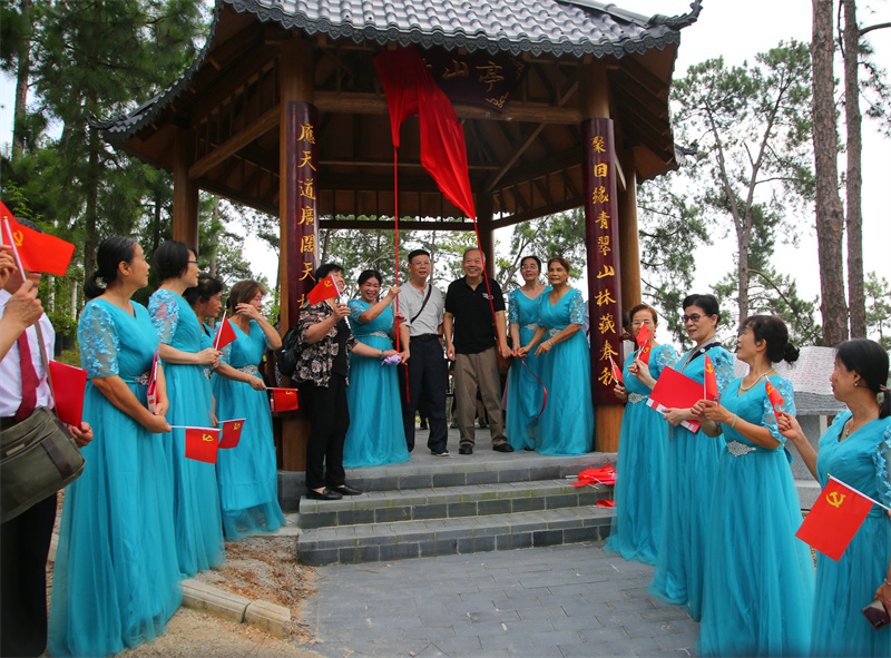 为感念知青曾经为七坡林场作出的贡献,铭记那段光荣的激情岁月,七坡林场在立新森林人家分别为老三届、七三届、七四届的知青建立了绿山亭、琦山亭、邕青亭。今正值中国共产党成立100周年和知青亭圆满落成之际,各届知青场友们共聚在立新,为知青亭举行隆重揭牌仪式。刘运华书记、朱兵常务副场长、陈文军副院长与知青代表一起为知青亭揭牌。揭牌仪式上,知青们一起朗诵诗歌、唱起红歌,表达对祖国对党的深情。大家一起种植下黄花风铃木,纪念当年荒山造林的艰苦岁月。