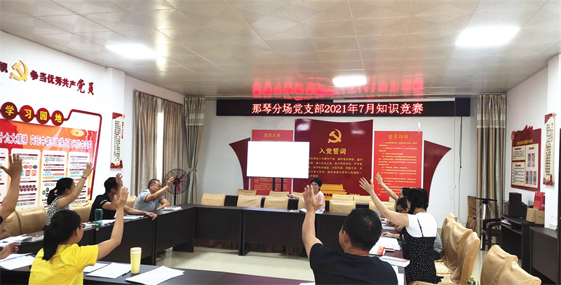 结合林场“学法规、学制度、学业务”学习活动开展,7月13日,那琴分场党支部组织全体党员及入党积极分子开展知识竞答活动。