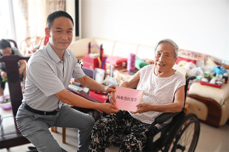 陈春咏处长向姚俊英老人送上困难帮扶资金和慰问品