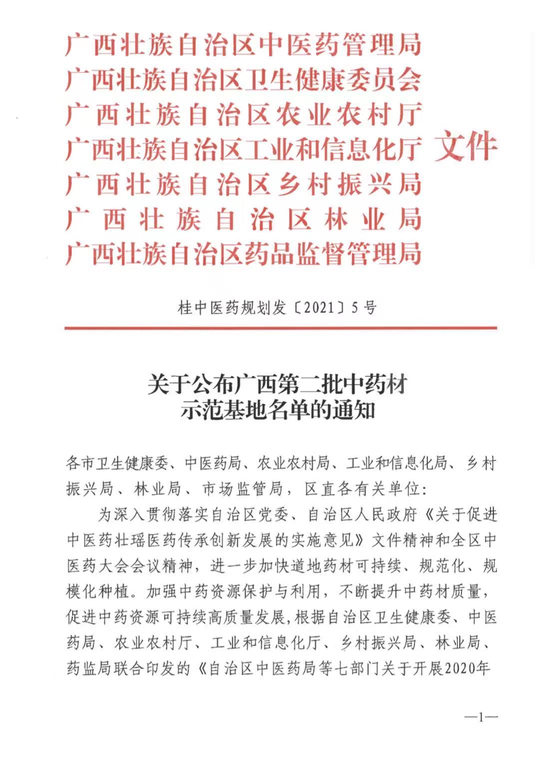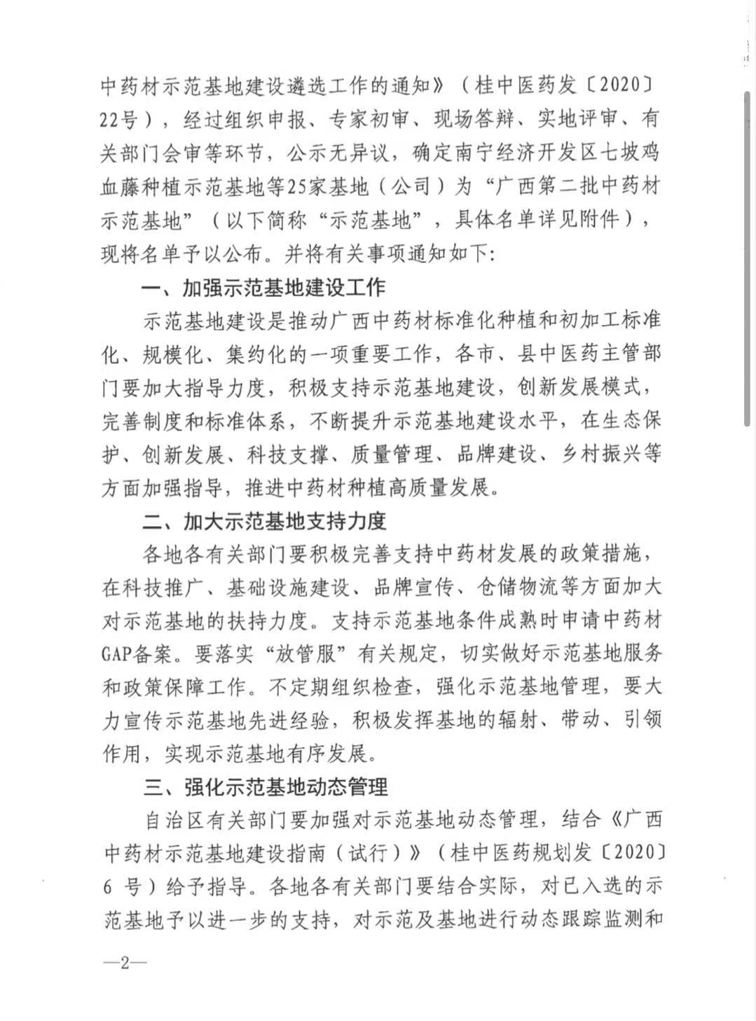 关于公布第二批中药材示范基地名单的通知