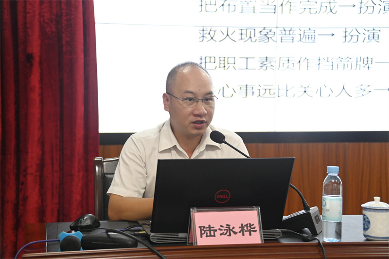 培训邀请了广西退役军人培训中心培训部部长、国家高级人力资源管理师陆泳桦进行授课。陆泳桦老师以《赋能领导力与高效执行力》为题,结合自己多年来的工作经验,运用通俗易懂的语言,结合丰富的案列,分别从权利戒律与影响力传播、赋能领导力的三项技术、结果思维—责任心决定执行力、中层管理者的自我修炼等内容进行了详细讲解。
