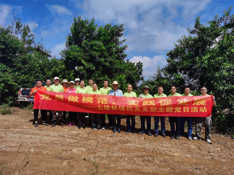 2021年9月18日,七坡林场机关第四党支部前往康宁分场澳洲坚果种植基地开展劳动实践主题党日活动,副场长莫继有、副处级干部林宁参加劳动实践。