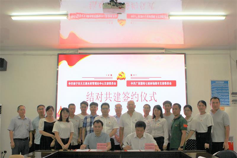 2021年9月24日,七坡林场绿丰党支部与大王滩水库管理处中心支部联合开展“党史学习教育,践行使命担当”结对共建活动,并签订《结对共建协议书》。七坡林场常务副场长朱兵,两党支部共17名党员参加活动。