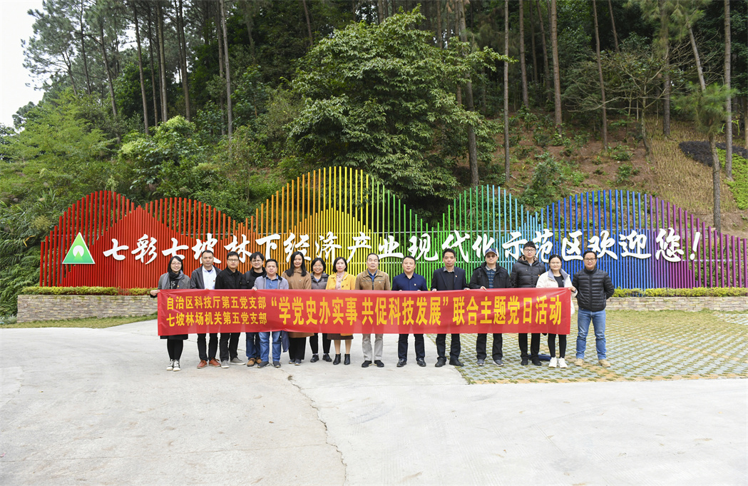 自治区科技厅农业农村处副处长王国乐、七坡林场副场长周启华以及两支部党员代表、七坡林场农业科技园区工作专班成员共20多人参加活动。