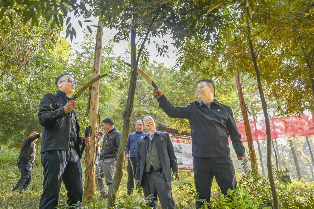 黄政康副局长(右一)修枝。左二为黄强处长、右二为刘运华书记。