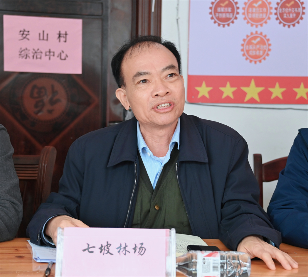刘运华书记在发言中表示,七坡林场作为安山村的后援单位,将会不折不扣贯彻落实好上级指示精神,尽最大努力做好服务保障,充分利用好林场的技术优势,做好山的文章,争取实现林地利用率和产量的提升,全力做好各项帮扶工作,为实现乡村振兴努力。