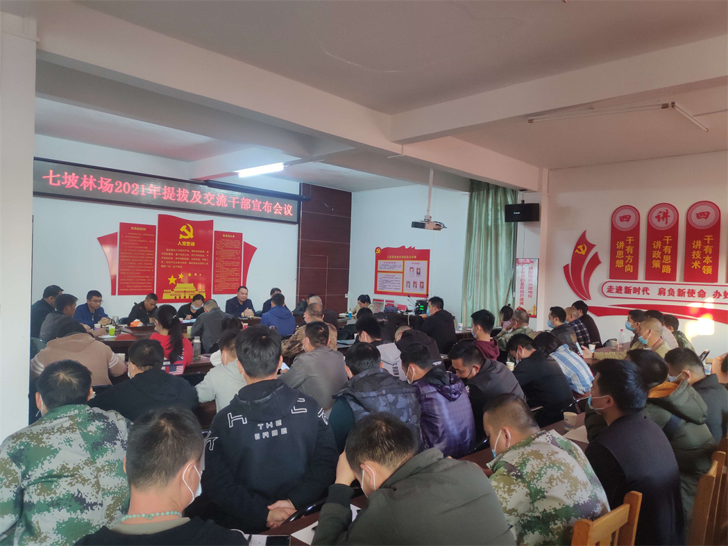 近期,七坡林场在全场范围内开展了中层干部交流轮岗工作。2021年12月13日-15日,场领导分别带队到各单位宣布新的干部任命决定。本次交流轮岗共涉及中层领导干部51人,其中新提拔22人、交流轮岗29人。这也是林场自2018年以来较大范围的一次中层干部交流轮岗。