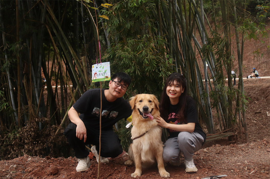 在保证质量的基础上,你追我赶,不一会儿就完成植树并挂上专属树牌获得专属植树证书。小朋友们脸上都露出自豪神情,纷纷和自己栽下的小树合影留念。还有为自己和宠物宝宝认种的,真的好有爱!