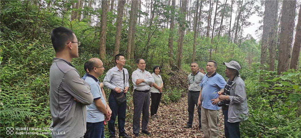 2022年5月6日,广西人工林种植行业协会高级顾问庞正轰、韦善华、陈瑚等到七坡林场开展森林质量精准提升相关工作调研。