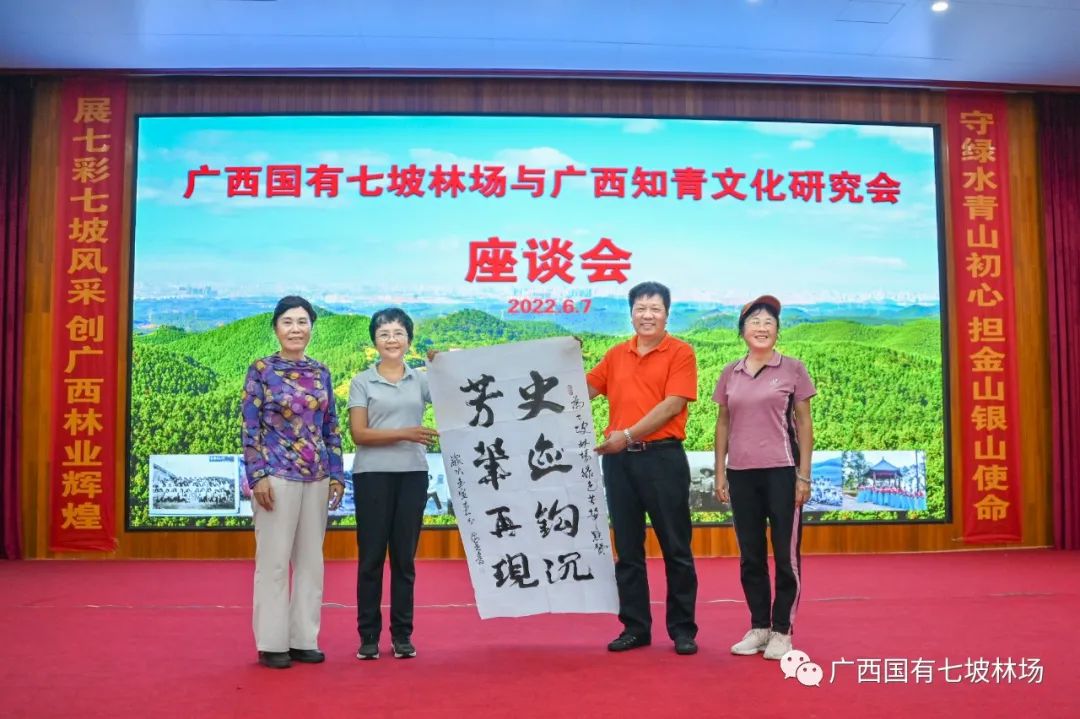 最后,潘海深代表广西知青文化研究会为七坡林场知青文集《绿色芳华》送上广西知青文化研究会创会会长、原广西大学党委书记阳国亮的书法作品,寄以祝福。