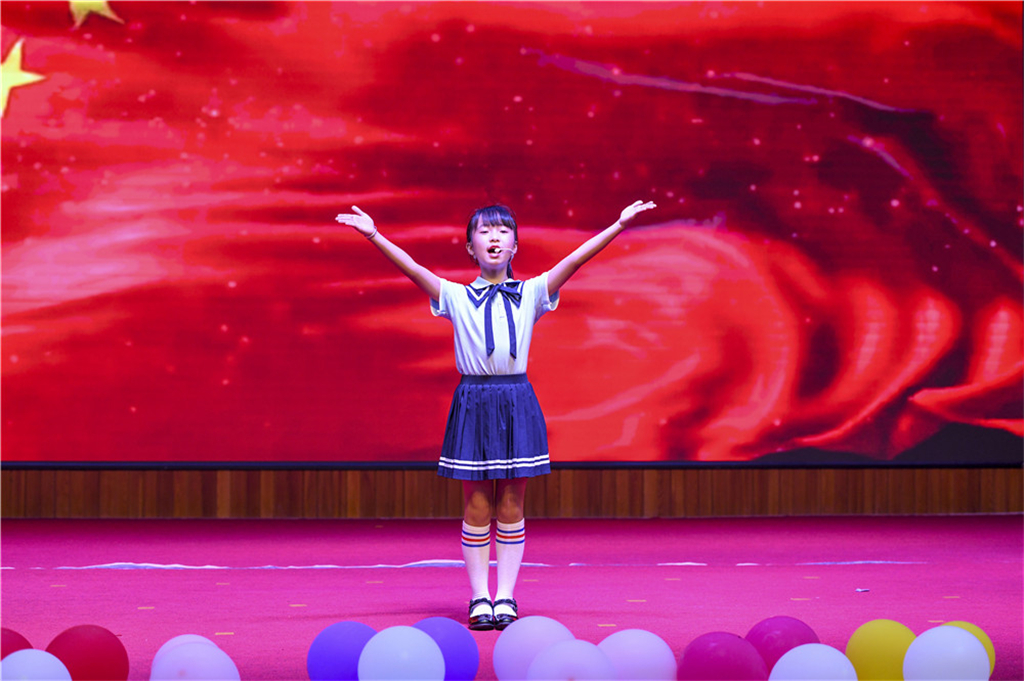 职工刘丁铭家的刘彦希小朋友给大家朗诵爱党爱国诗歌《红色信仰》