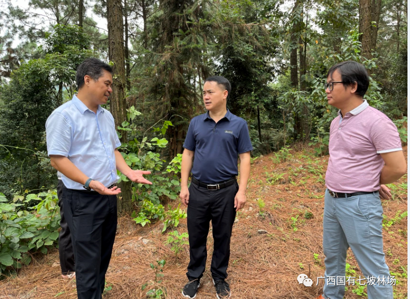 8月20日,贵州省荔波县林业局党组书记、局长姚雄举率队到七坡林场考察林下经济发展情况。七坡林场副场长莫继有陪同考察。