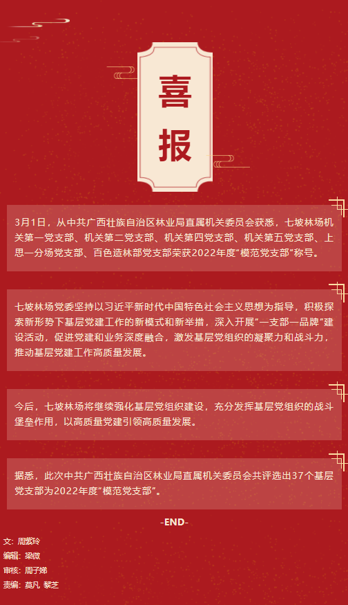 七坡林场六个党支部荣获2022年度“模范党支部”称号