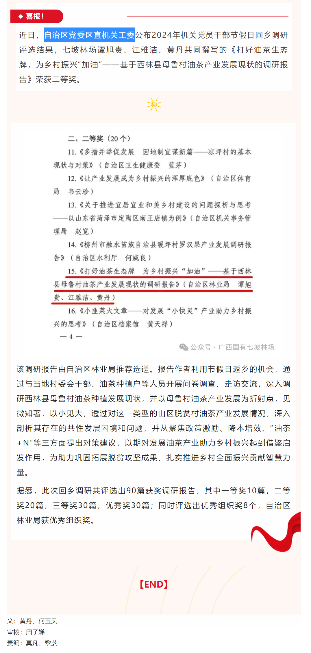 七坡林场调研报告在2024年机关党员干部节假日回乡调研活动中获二等奖